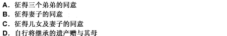 某男婚后两年其父病故。他和母亲及3个弟弟继承父亲的遗产。为了使母亲赡年能生活得更好,他想把继承遗产送给母亲,他应该()。