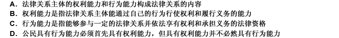 下列关于权利能力和行为能力的表述,正确的是A. 法律关系主体的权利能力和行为能力构成法律关