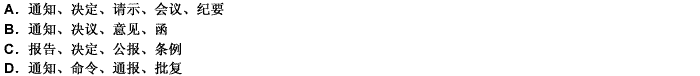 在下列各组文种中 都可以用于下行文的一组是()A.通知 决定 请示 纪要B.通知 命令 通报 批复C.报