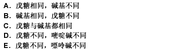 DNA和RNA彻底水解后的产物( )A.戊糖相同 碱基不完全相同B.戊糖不完全相同 碱基相同C.
