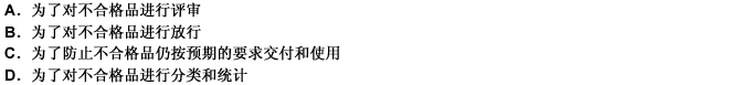 对不合格品进行控制的主要目的是_________。A.为了对不合格品进行评审B.为了对不合格品进行放行C.
