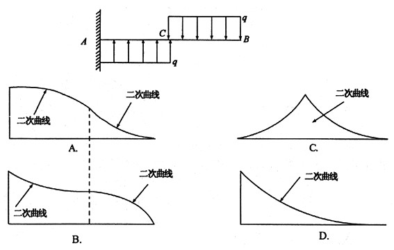 悬臂梁受三角形分布荷载作用如下图所示 则下列选项正确的是()。A.剪力图为倾斜的直线 弯矩图为二