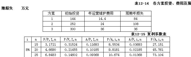 计算各方案初始投资的费用年值和各方案预期每年减少损失的效益。