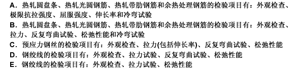 钢筋原材料进场检验项目中 预应力钢丝的检验项目有( )。A.外观检査 拉力(含伸长率) 反复弯曲试
