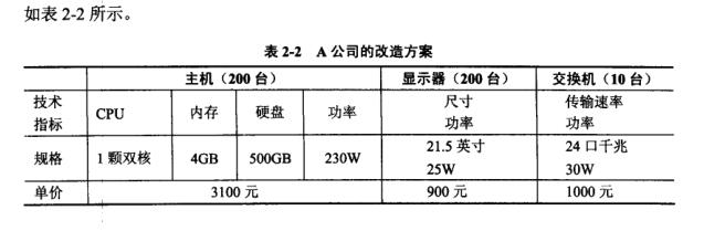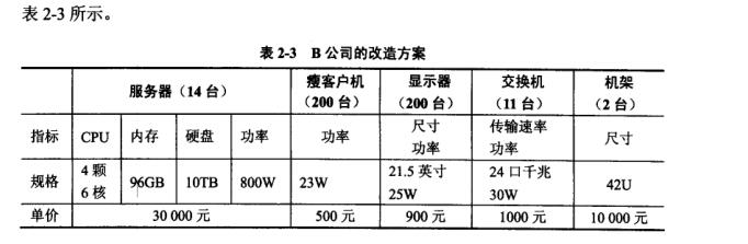 某高校计算机学院实验中心有5个机房.200个机位,主要承担学生计算机软件相关课程的上机实践任务。实验中心每年工作时间约为200天,每天平均工作时间为8小时。2013年初,实验中心决定对机房进行升级改造,其中UPS电源等设备可利旧,不需要重新购置,改造后每个机位机器的基本配置要求见表2-1。实验中心现公开征集硬件改造方案。