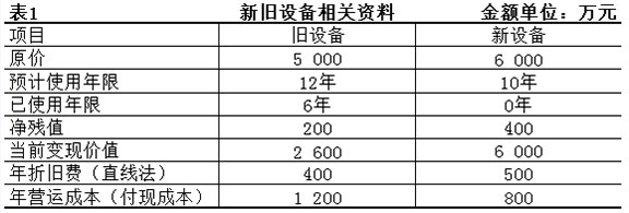 2.乙公司是一家机械制造企业,适用的所得税税率为25%。公司现有一套设备(以下简称旧设备)已经使用6年,为降低成本,公司管理层拟将该设备提前报废,另行购建一套新设备。新设备的投资于更新起点一次性投入,并能立即投入运营。设备更新后不改变原有的生产能力,但营运成本有说降低。会计上对于新旧设备折旧年限、折旧方法以及净残值等的处理与税法保持一致。假定折现率为12%,要求考虑所得税费用的影响。相关资料如表1所示:
