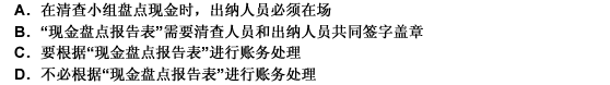 关于现金的清查 下列说法不正确的是( )。A.在清查小组盘点现金时 出纳人员必须在场B.“