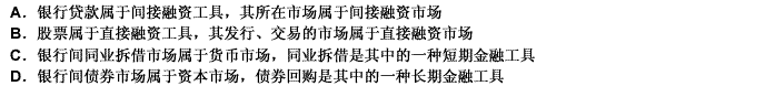 下面关于金融工具和金融市场的叙述 错误的是()。 A.贷款属于间接融资工具 其所在市场属于间接融