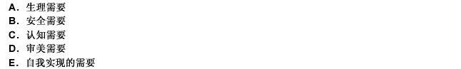 马斯洛的需求层次论中,将人的大多数需要分为A、生理需要B、安全需要C、社交需要D、尊重需要E、自我