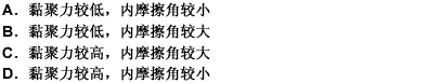 沥青混合料结构组成中 骨架一空隙结构的特点是( )。 A.黏聚力较高 内摩擦角较小