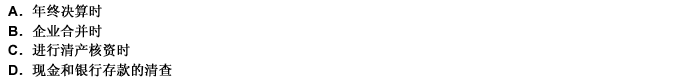下列情况中 适合采用局部清查的方法进行财产清查的是( )。 A.年终决算时 B.进行清产核资时 C.企业合并时