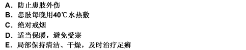 血栓闭塞性脉管炎的护理 下列错误的是A.防止患肢外伤B.患肢每晚用40℃水热敷C.绝对戒烟D.适当保暖
