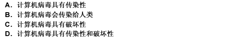 计算机病毒最大的危害是() A.计算机病毒具有传染性B.计算机病毒会传染给人类C.计