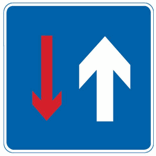 这个标志是何含义? A.减速让行B.潮汐车道C.分离式道路D.双向交通